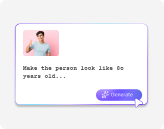 Upload your photo and use short prompts like “make me 10 years older” to generate age-progressed images automatically.