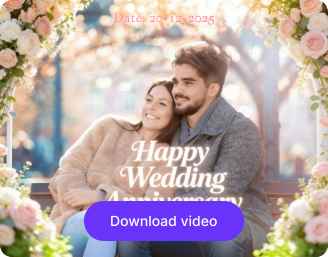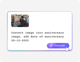 You can create unique anniversary images or video backgrounds based on specific ideas, such as floral, vintage, or minimalist. All you need to do is describe what you want in a text prompt, and the AI photo editor handles the rest.