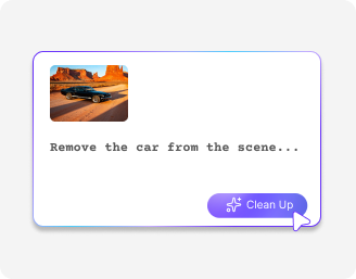 Remove unwanted objects from your photos instantly. Type in a simple prompt describing what needs to be cleaned up.