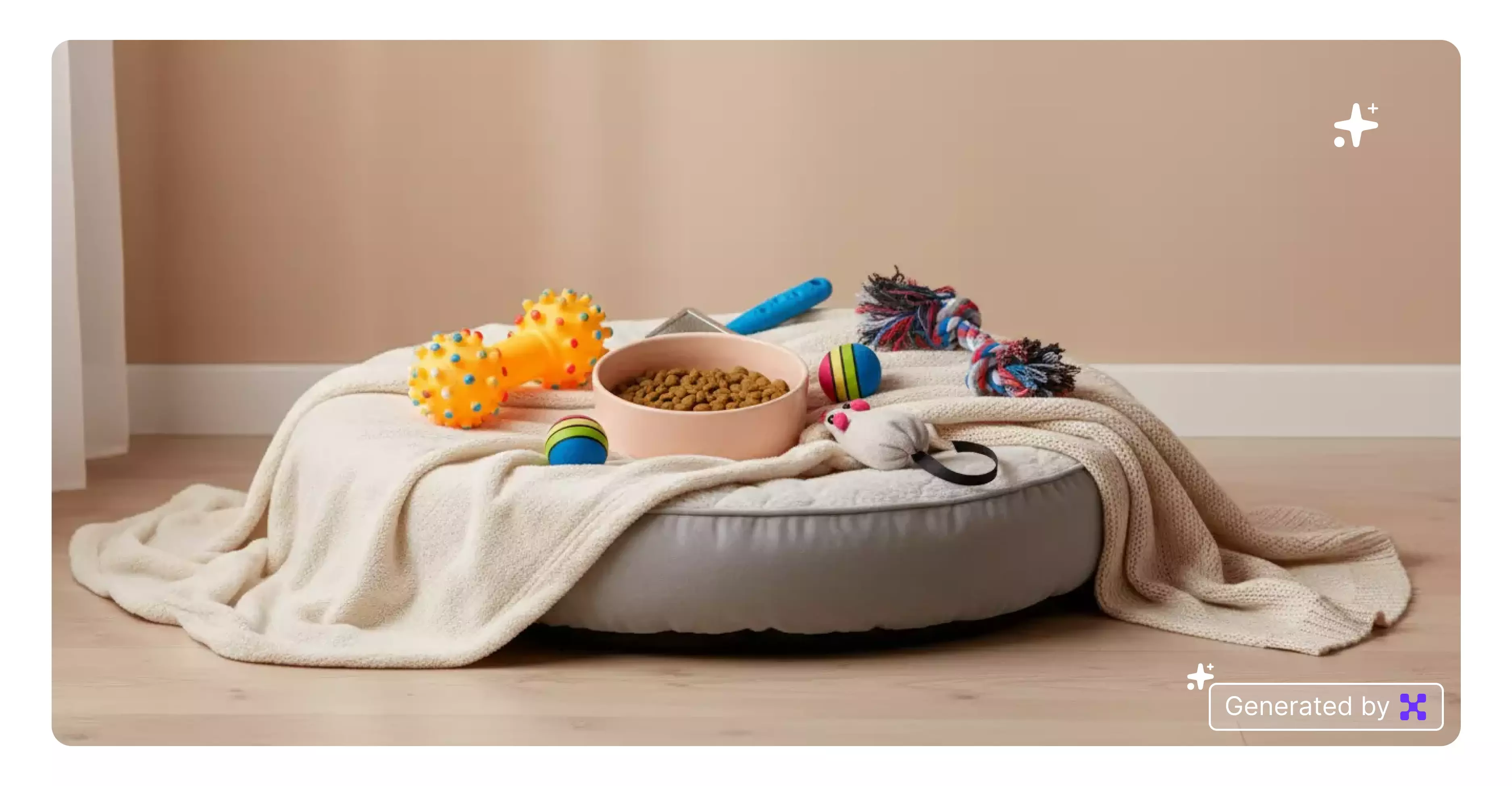 Use a beige or gray linen fabric surface as the background with natural light. Ideal for leashes, collars, or grooming items with texture detail.