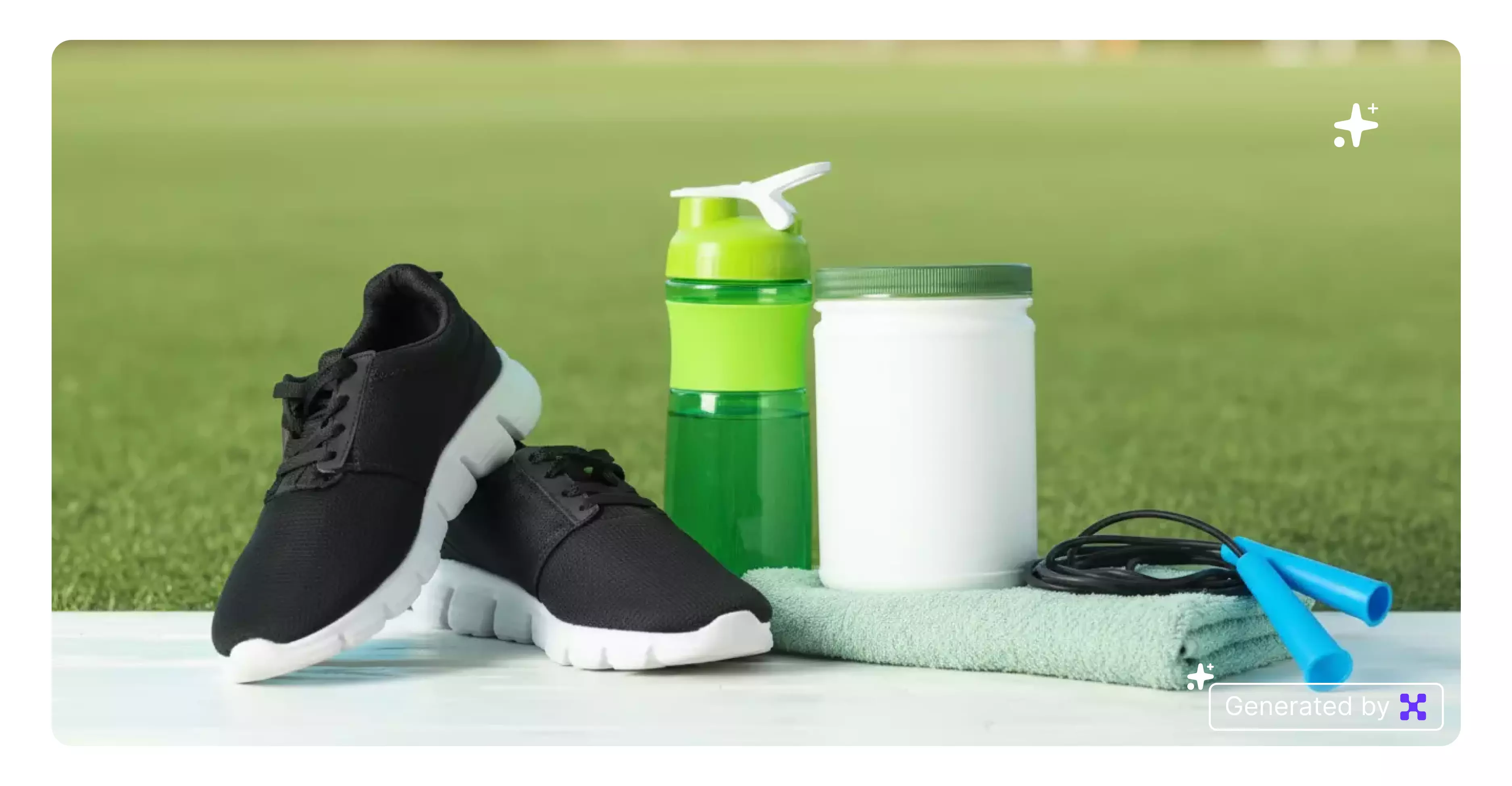Set the product on a sports bench with a blurred stadium or track in the distance. Maintain warm daylight for a natural, athletic feel.